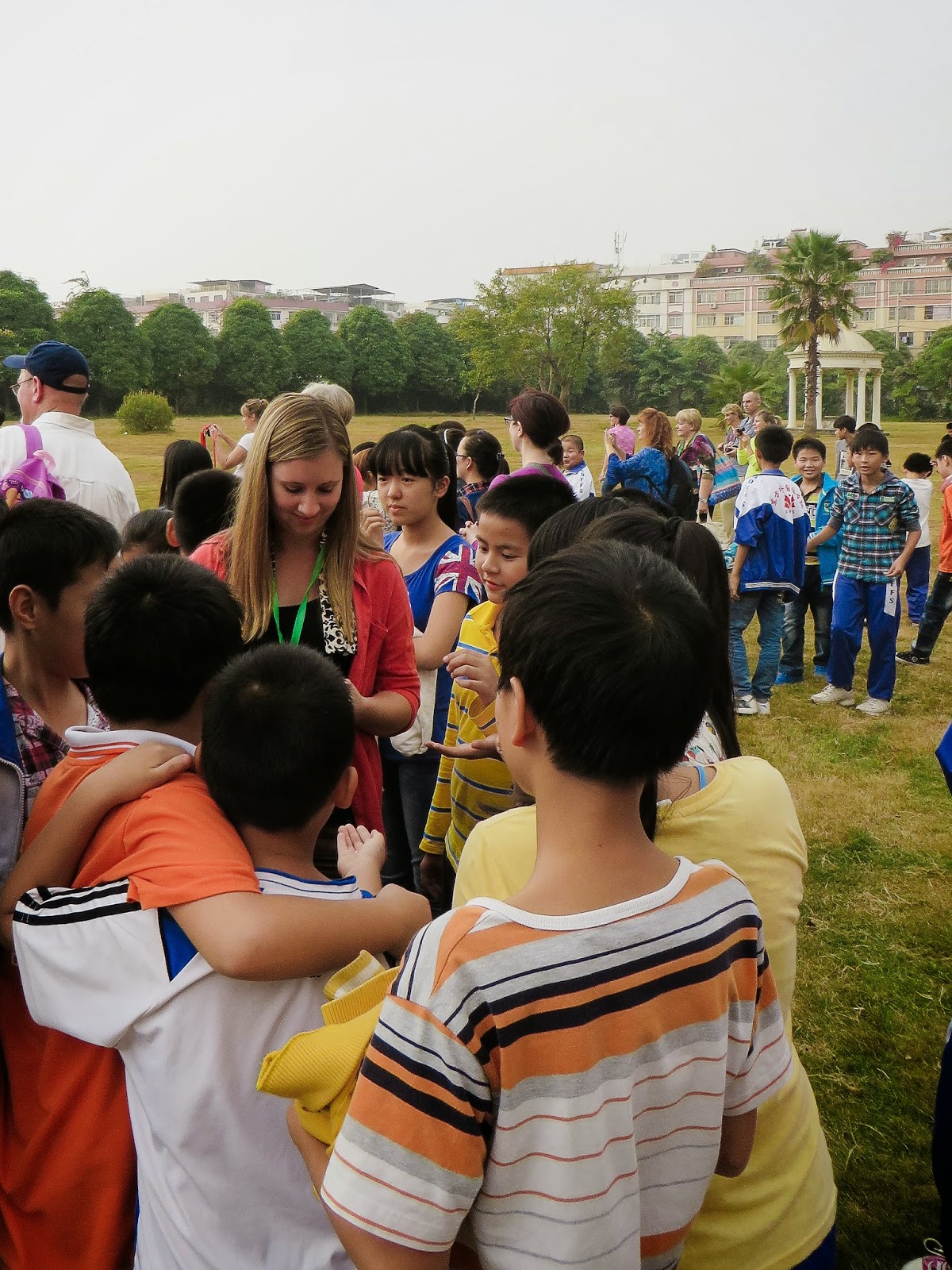 Our next stop was a local school. The school was actually a boarding school that taught English. When we arrived all the kids starting screaming "Hello!". We visited a 4th grade class where we did some introductions and exchanges gifts. Them all the kids went outside to play games. There were a ton of kids at the school and they were all so interested in us. It was funny trying to talk to them because most of them only knew a few phrases. Many of the kids wanted pictures with us. I handed out a few jolly ranchers and a few seconds later I had a big crowd around me. The jolly ranchers were a big hit and gone fast! We really enjoyed playing with all the kids at the school.